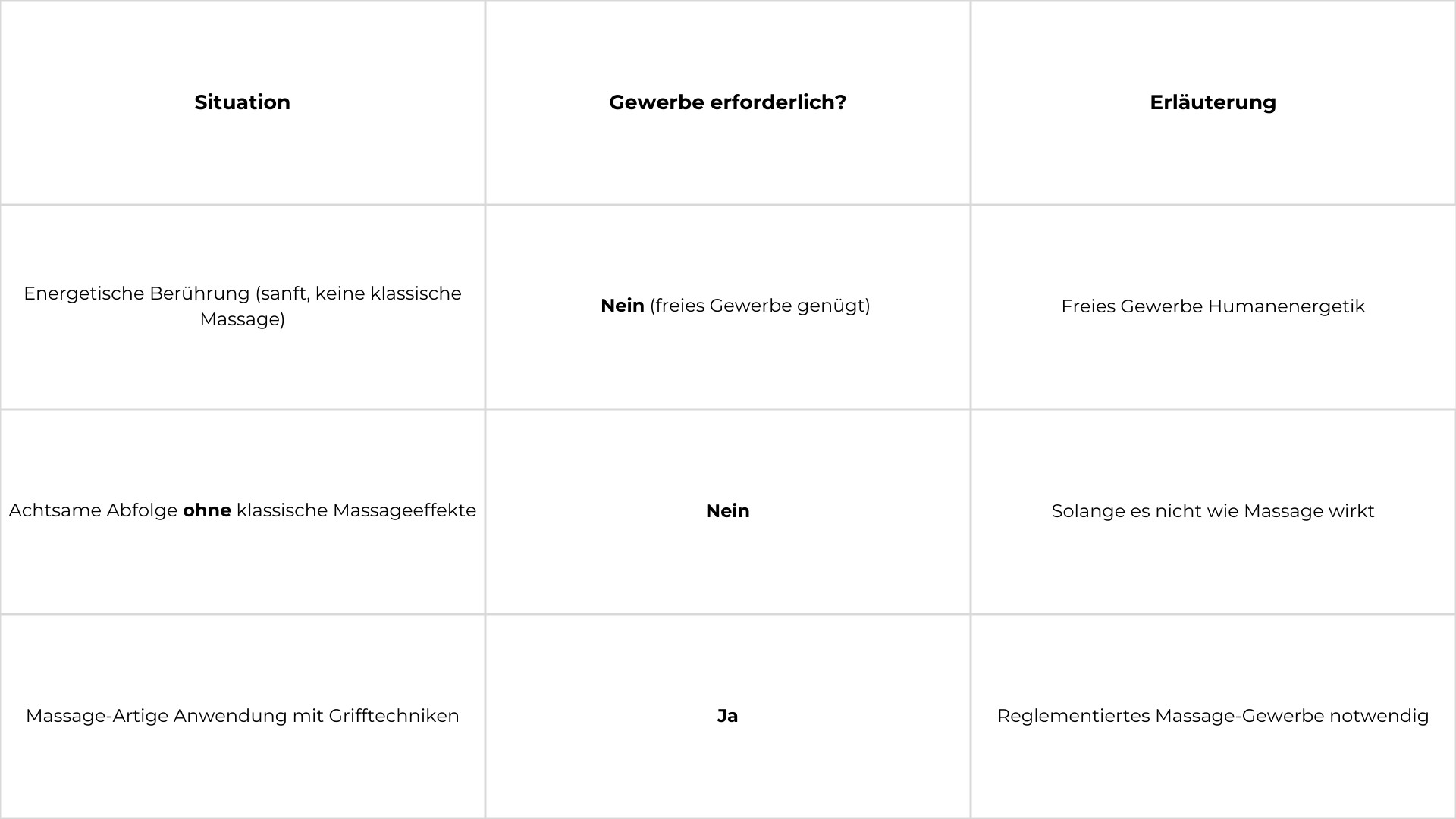 Bei voller Ausschöpfung (120 UE) der gelehrten Möglichkeiten erreicht man gewerberechtlich den Berufsstand der Massage. Die praktische Ausführung ist dabei entscheidend.